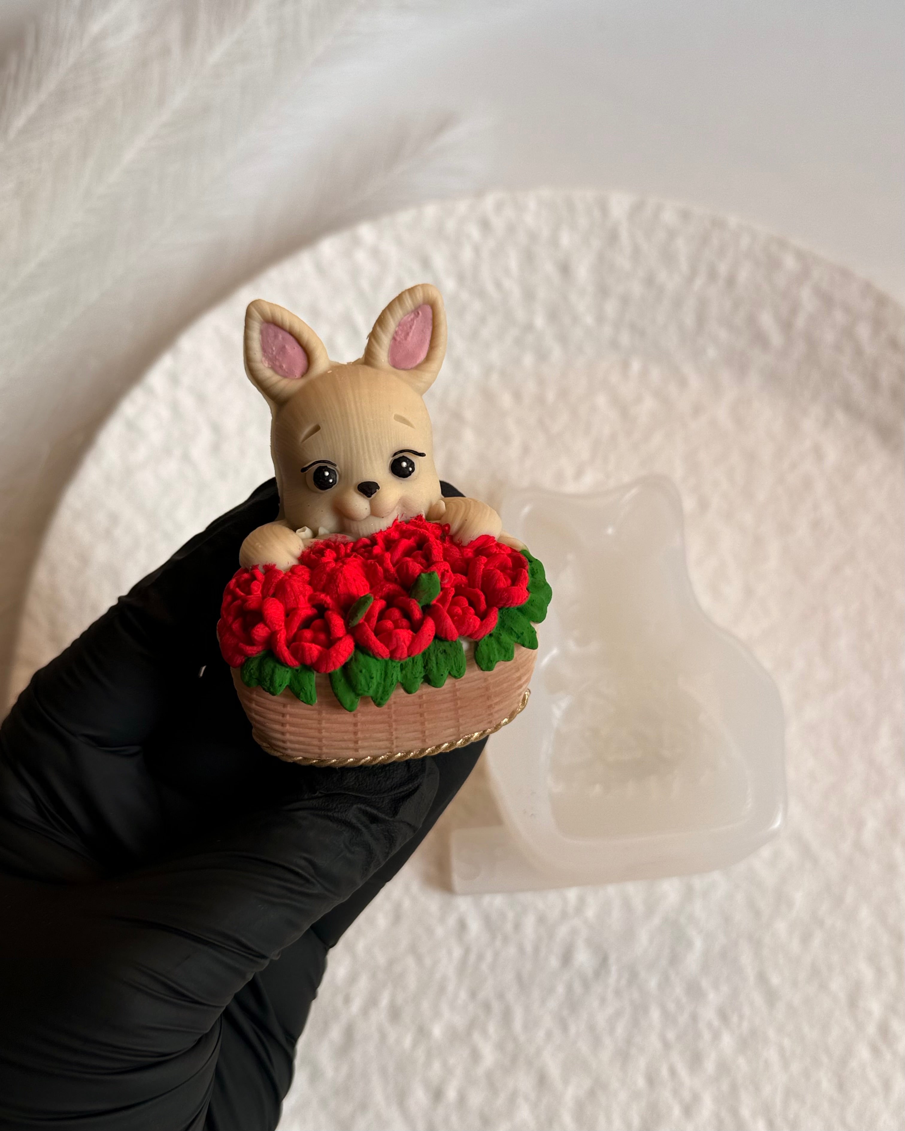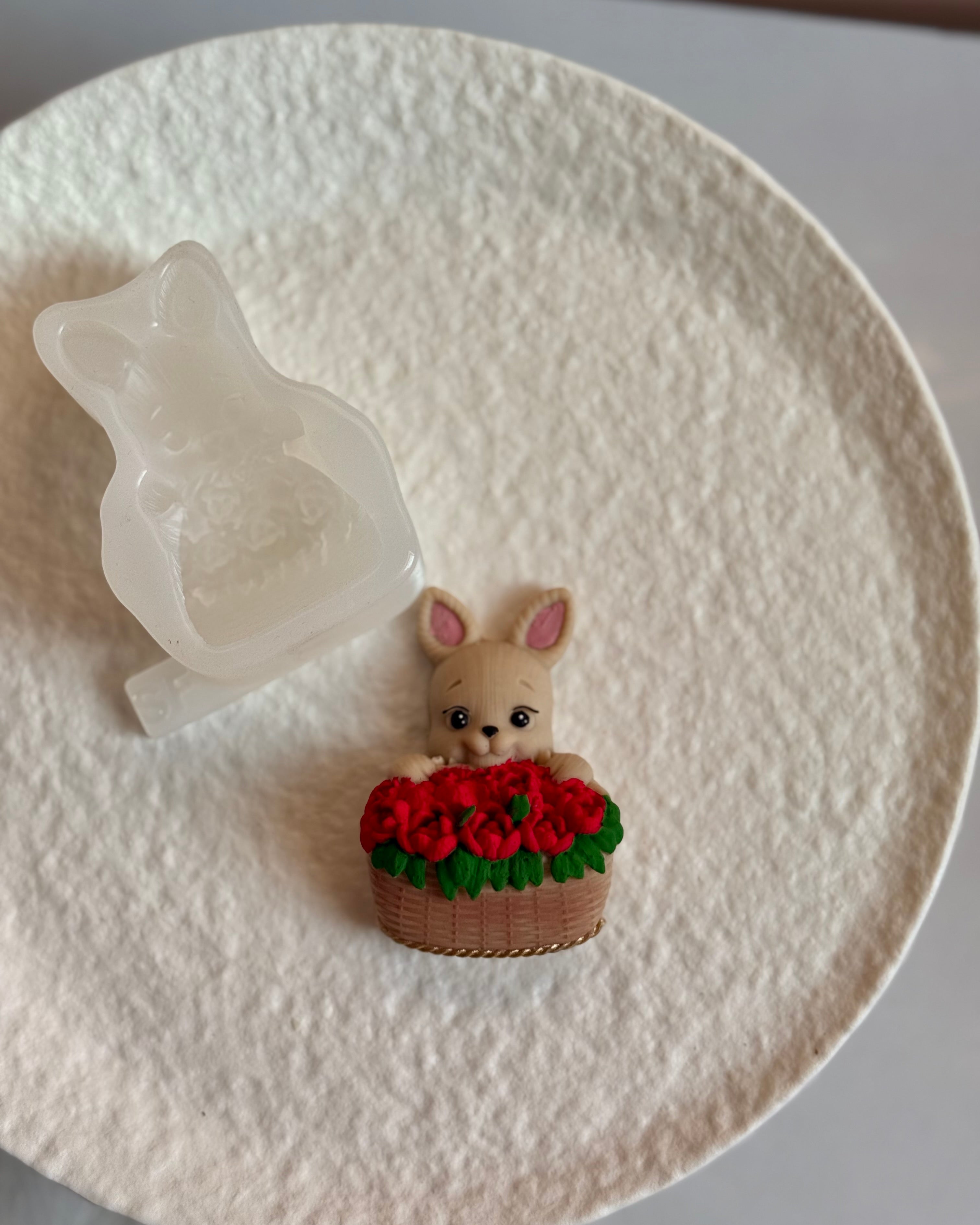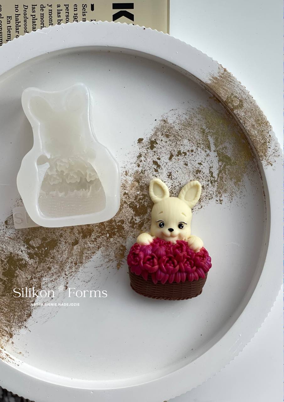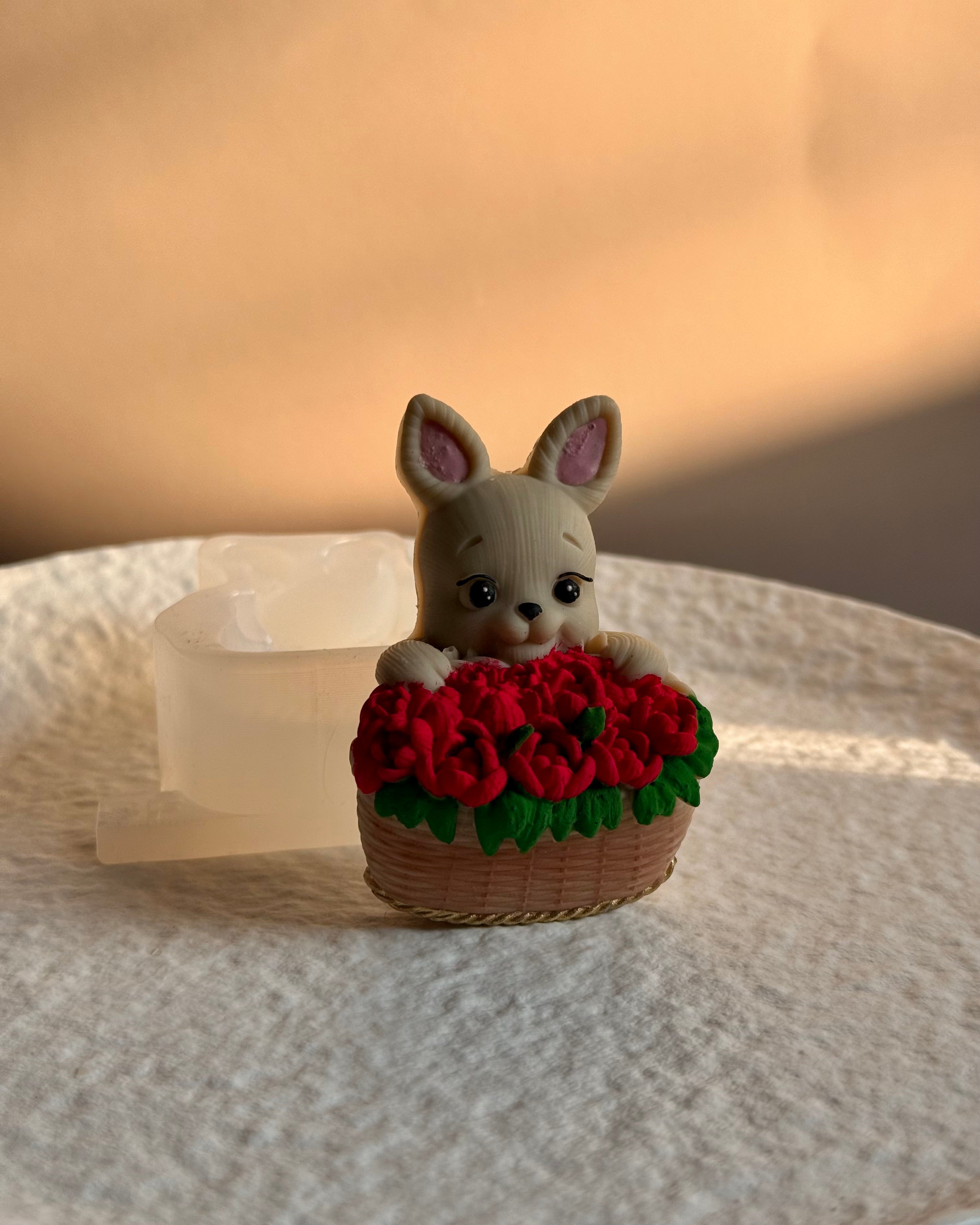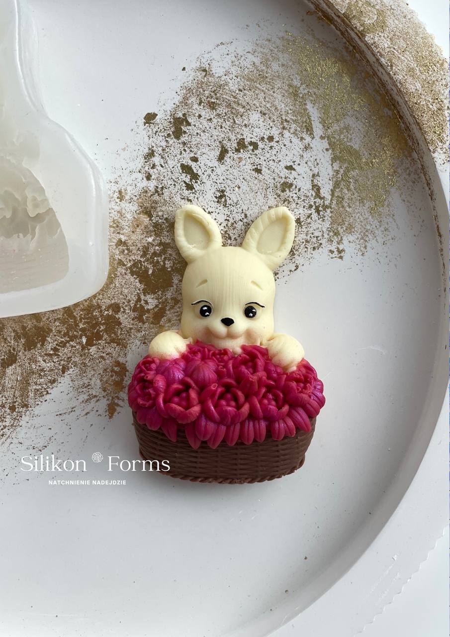 Zając z koszem róż