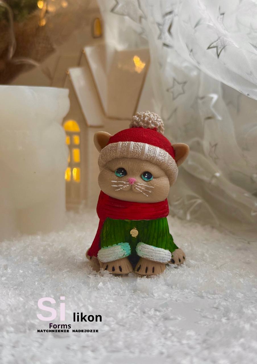Nasza najnowsza silikonowa forma to uroczy kociak w zimowej stylizacji! 🐱🧣 Z jego słodkimi oczkami i ciepłym szalikiem, ten świąteczny kotek wniesie odrobinę magii i uroku do Twojego domu. Idealny na zimowe dekoracje lub jako oryginalny prezent dla miłośników kotów!