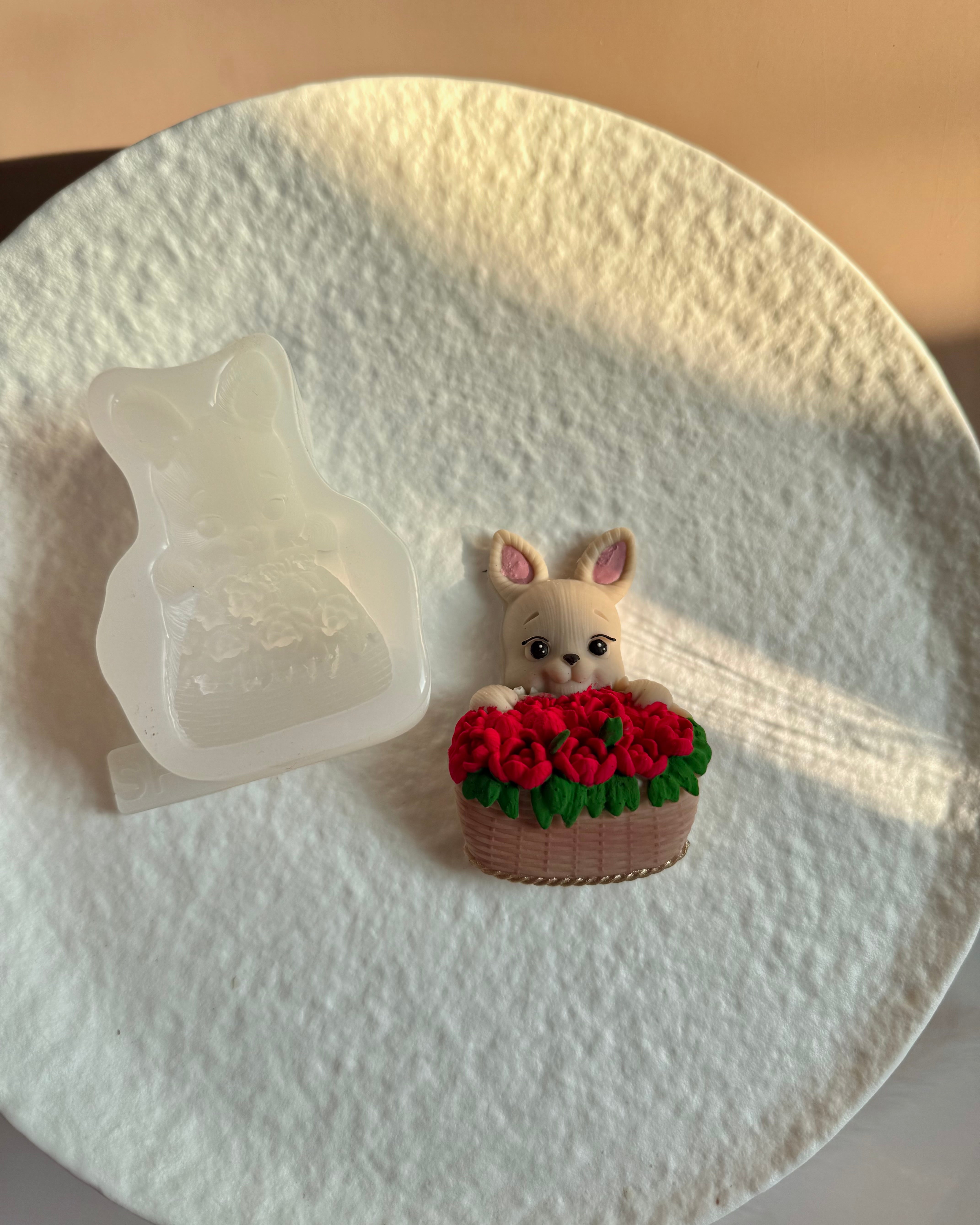 Zając z koszem róż
