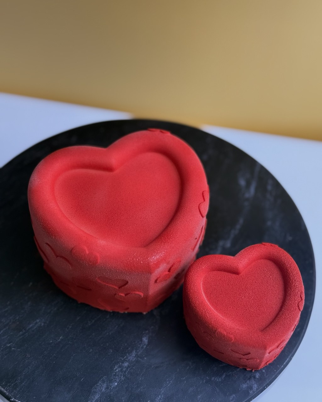 Zachwycająca forma silikonowa „Serduszkowy duet” to połączenie dwóch rozmiarów – idealnych do tworzenia modnych bento tortów oraz małych, efektownych deserów.